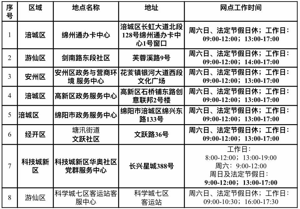 綿州通辦卡中心(涪城區(qū)長虹大道北段128號1號窗口),服務咨詢電話可撥打0816-2244123或0816-2123666。