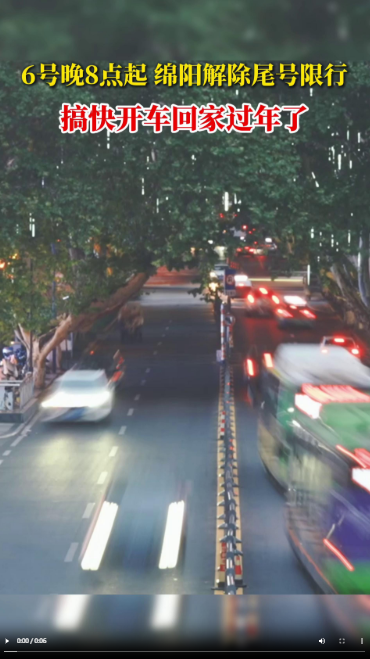 2月5日,記者獲悉,從2026年2月6日20時(shí)起,綿陽(yáng)市解除本輪秋冬季特殊時(shí)段機(jī)動(dòng)車臨時(shí)限行措施。