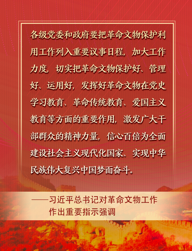 近日,習(xí)近平總書記對革命文物工作作出重要指示,深刻闡明革命文物工作的重大意義、目標(biāo)任務(wù)和基本要求,為做好新時(shí)代革命文物工作提供了根本遵循。