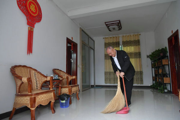 于都縣梓山鎮(zhèn)潭頭村村民孫觀發(fā)正在自家的民宿內(nèi)打掃衛(wèi)生(4月7日攝)。新華社記者 彭昭之 攝