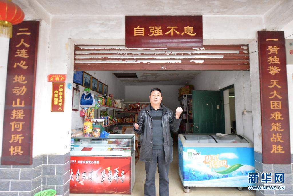 石光武小時(shí)候因事故致右手殘疾,妻子張正芳是聾啞人,他們一起努力,在村里開了一間小賣部。汶川大地震來(lái)襲時(shí),石光武的住房和小賣部全部倒塌。在救援隊(duì)伍的幫助下,兩天后他就在路旁搭起兩間過渡房,臨時(shí)小賣部又開張了。