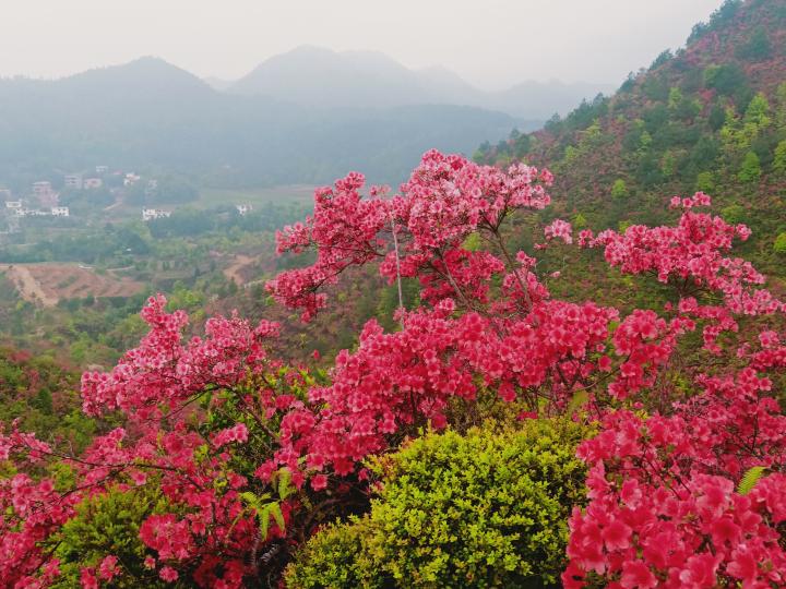 位于廈蓉高速沿線的江西于都縣瑤金山,映山紅美麗盛開。(江西于都縣委宣傳部供圖)