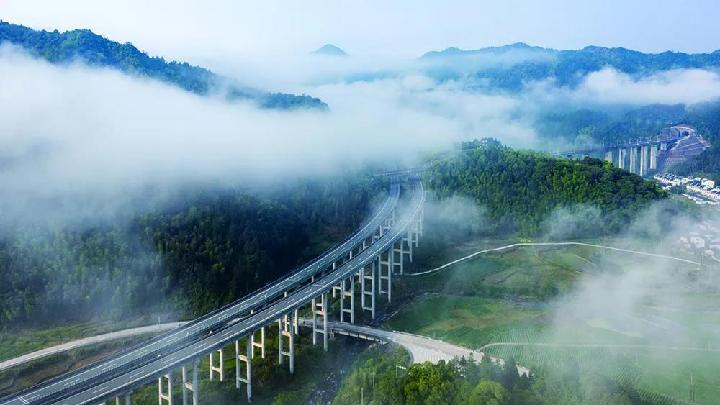 從空中俯瞰,縱橫交錯的高速公路宛如一條條飄帶,將原三省老區(qū)蘇區(qū)串聯(lián)一起,極大改善了當?shù)厝罕姷某鲂袟l件,有力促進了人流、物流的流通,成為老區(qū)蘇區(qū)群眾奔向美好生活的康莊大道。