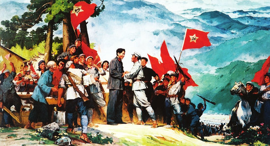 這是反映井岡山會師的油畫