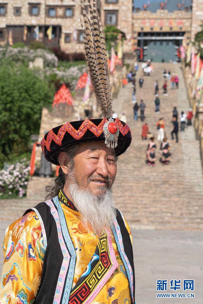 這是5月9日在四川省阿壩藏族羌族自治州茂縣拍攝的參與中國(guó)古羌城開門儀式演出的羌族老人。新華社記者 胥冰潔 攝