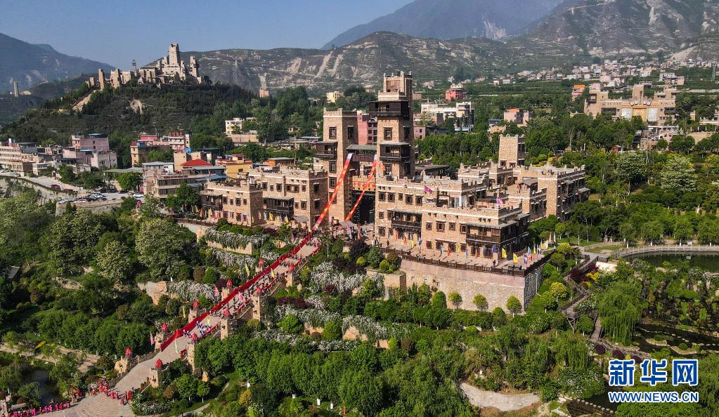 這是5月9日拍攝的位于四川省阿壩藏族羌族自治州茂縣的中國(guó)古羌城(無人機(jī)照片)。新華社記者 胥冰潔 攝