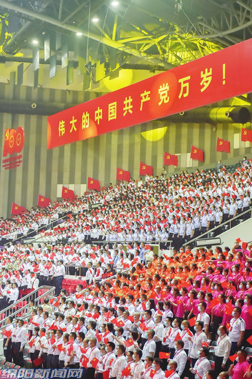 6月30日,九洲體育館內(nèi),黨旗飄飄,歌聲嘹亮,“奮斗百年路·放歌新時(shí)代”綿陽市慶祝中國共產(chǎn)黨成立100周年歌詠會在此舉行。
