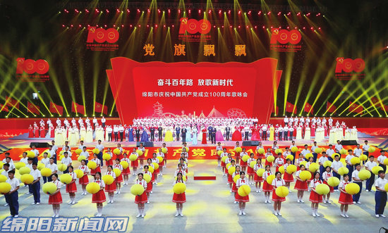 6月30日,綿陽市慶祝中國共產(chǎn)黨成立100周年歌詠會在九洲體育館舉行。(綿陽日報社融媒體記者 賴杰 攝)