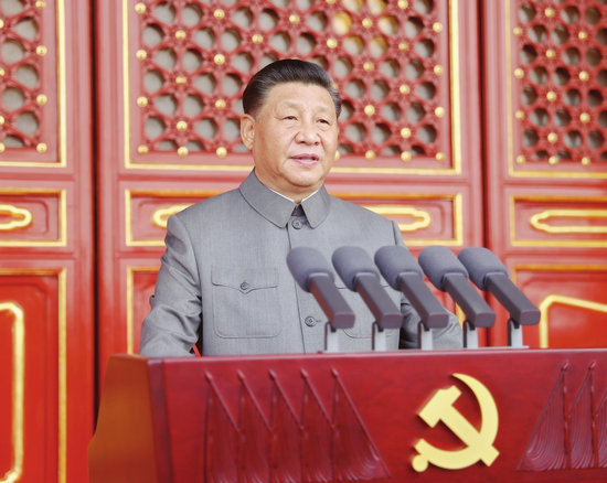 7月1日,慶祝中國(guó)共產(chǎn)黨成立100周年大會(huì)在北京天安門(mén)廣場(chǎng)隆重舉行。中共中央總書(shū)記、國(guó)家主席、中央軍委主席習(xí)近平發(fā)表重要講話。 (新華社記者 鞠鵬 攝)