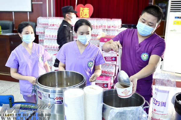 綠豆湯送給醫(yī)護(hù)人員(綿陽日報社融媒體記者王勇攝)