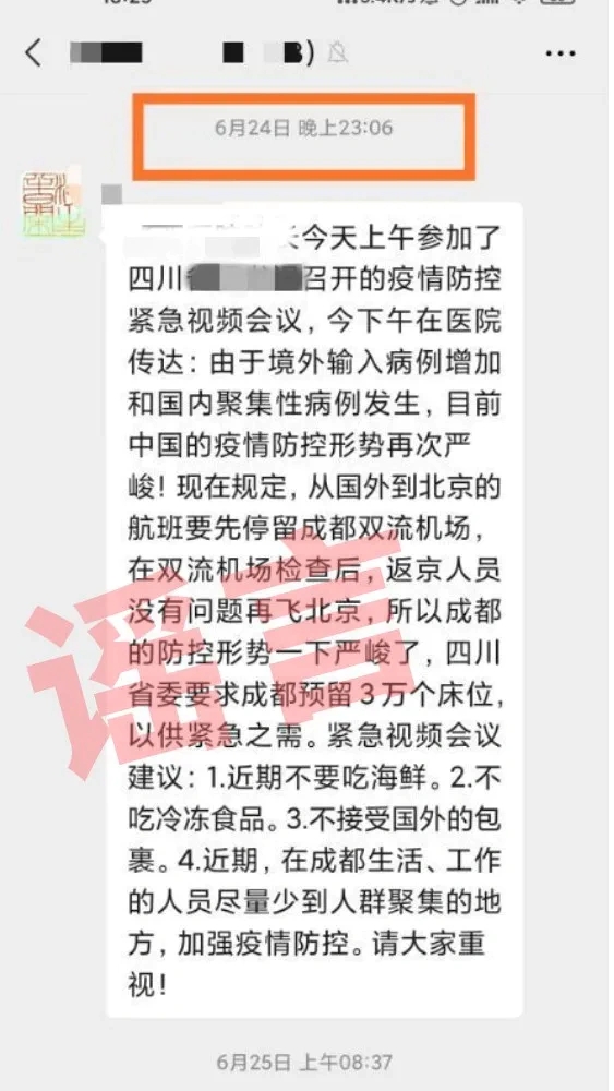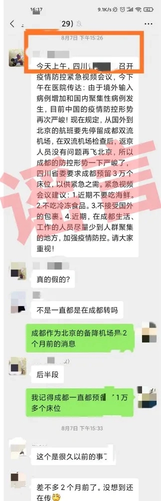 1月3日,一則消息又在網(wǎng)上流傳。這則消息稱,由于境外輸入病例增加和國內(nèi)聚集性防控形勢再次嚴(yán)峻,從國外到北京的航班要先停留成都雙流機場再飛北京;四川要求成都緊急預(yù)留3萬個床位的消息……到底是真是偽?一查詢,是2020年的謠言。