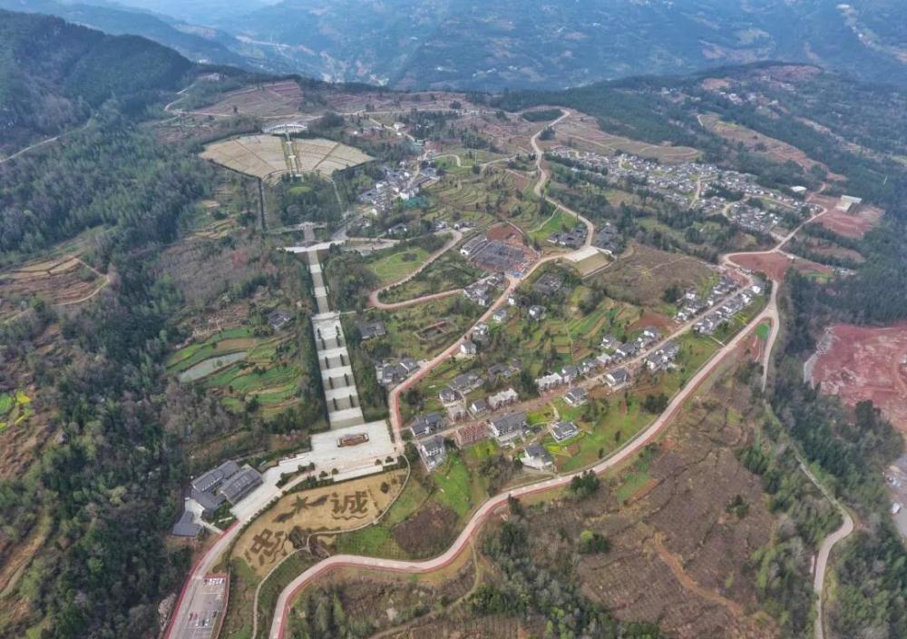 川陜革命根據(jù)地紅軍烈士陵園和王坪村全貌(航拍照片)。新華社記者劉坤攝