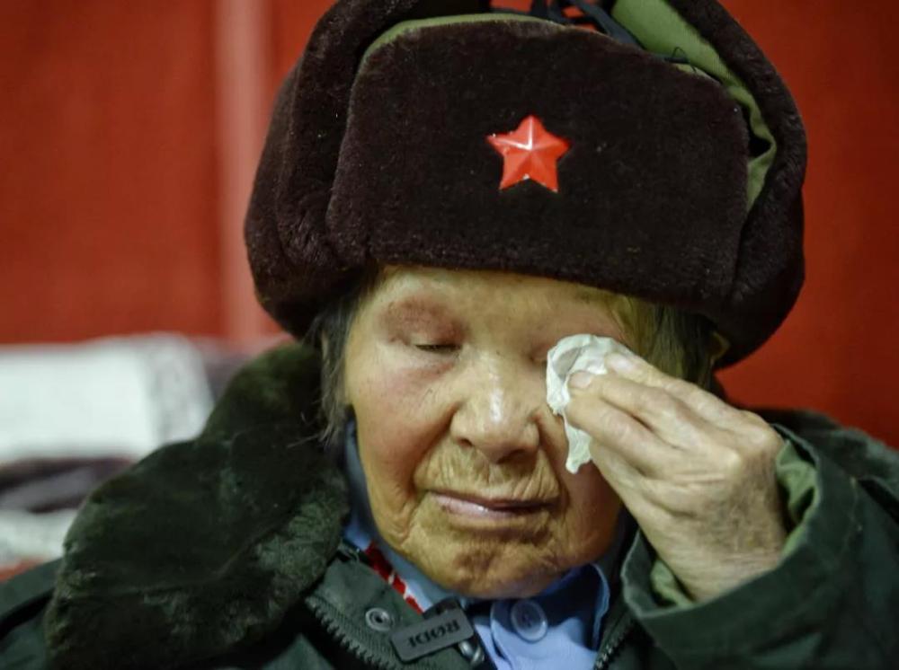 百歲女紅軍王少連坐在輪椅上,注視著一排排無(wú)字墓碑,就像注視著逝去的親人。哀婉的《思念曲》回蕩在山間,老人紅著眼眶,顫巍巍地舉起手,向墓群敬了一個(gè)軍禮。