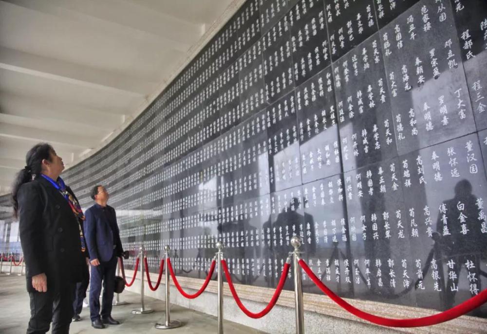 紅軍烈士后人在川陜革命根據(jù)地紅軍烈士陵園紅軍烈士紀(jì)念墻上找尋先輩的名字。新華社記者劉坤攝