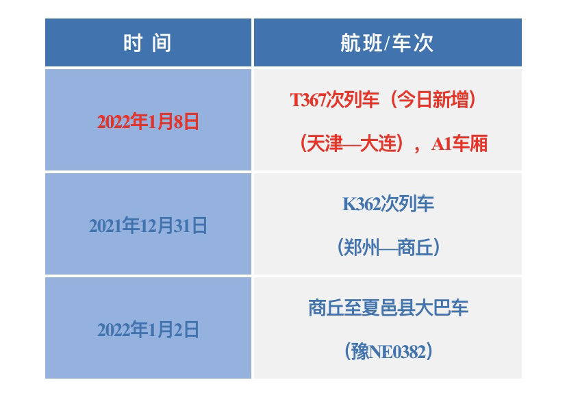 搭乘過(guò)以下交通工具的來(lái)(返)川人員,第一時(shí)間主動(dòng)向社區(qū)(村)、單位或入住酒店報(bào)備旅居史,配合做好各項(xiàng)疫情防控工作。