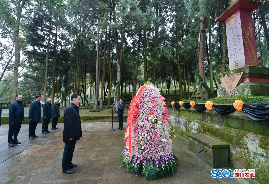 1月24日,省委書記彭清華來(lái)到通江縣沙溪鎮(zhèn)王坪村的川陜革命根據(jù)地紅軍烈士陵園,在紅四方面軍英勇烈士紀(jì)念碑前駐足并向革命烈士敬獻(xiàn)花籃。