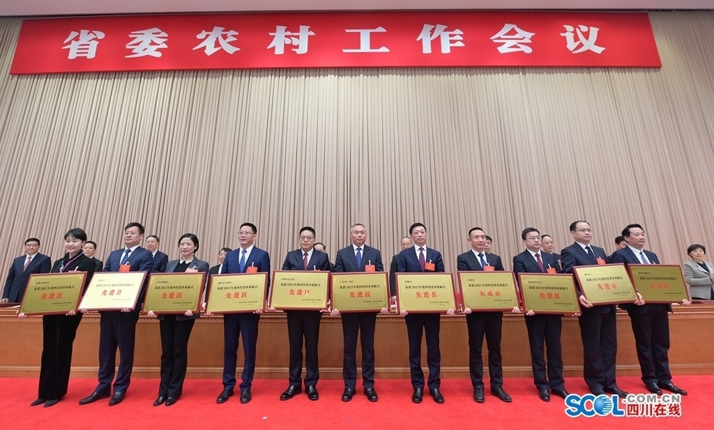 會(huì)上,傳達(dá)了中央農(nóng)村工作會(huì)議精神,宣讀了省委、省政府《關(guān)于表揚(yáng)2021年度四川省鄉(xiāng)村振興先進(jìn)市和先進(jìn)單位的通報(bào)》《關(guān)于命名2021年度四川省鄉(xiāng)村振興先進(jìn)縣(市、區(qū))、成效顯著縣(市、區(qū))、重點(diǎn)幫扶優(yōu)秀縣(市、區(qū))和先進(jìn)鄉(xiāng)鎮(zhèn)、示范村、重點(diǎn)幫扶優(yōu)秀村的決定》和省政府《關(guān)于命名2021年度四川省星級(jí)現(xiàn)代農(nóng)業(yè)園區(qū)的決定》。彭清華、黃強(qiáng)等省領(lǐng)導(dǎo)向受表揚(yáng)和新命名的先進(jìn)代表授牌。