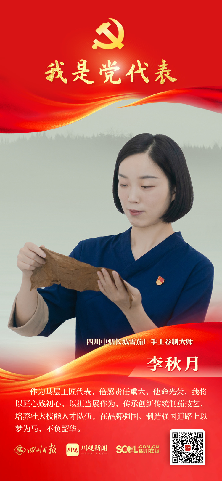 她叫李秋月,四川中煙工業(yè)有限責(zé)任公司長(zhǎng)城雪茄廠卷制大師。在她的履歷表上,寫滿了閃光的榮譽(yù):“全國(guó)五一巾幗標(biāo)兵”“四川省五一巾幗標(biāo)兵”“四川省勞動(dòng)模范”“四川省五一勞動(dòng)獎(jiǎng)?wù)?rdquo;“四川省技術(shù)能手”……黨的二十大代表,則是她的新身份。