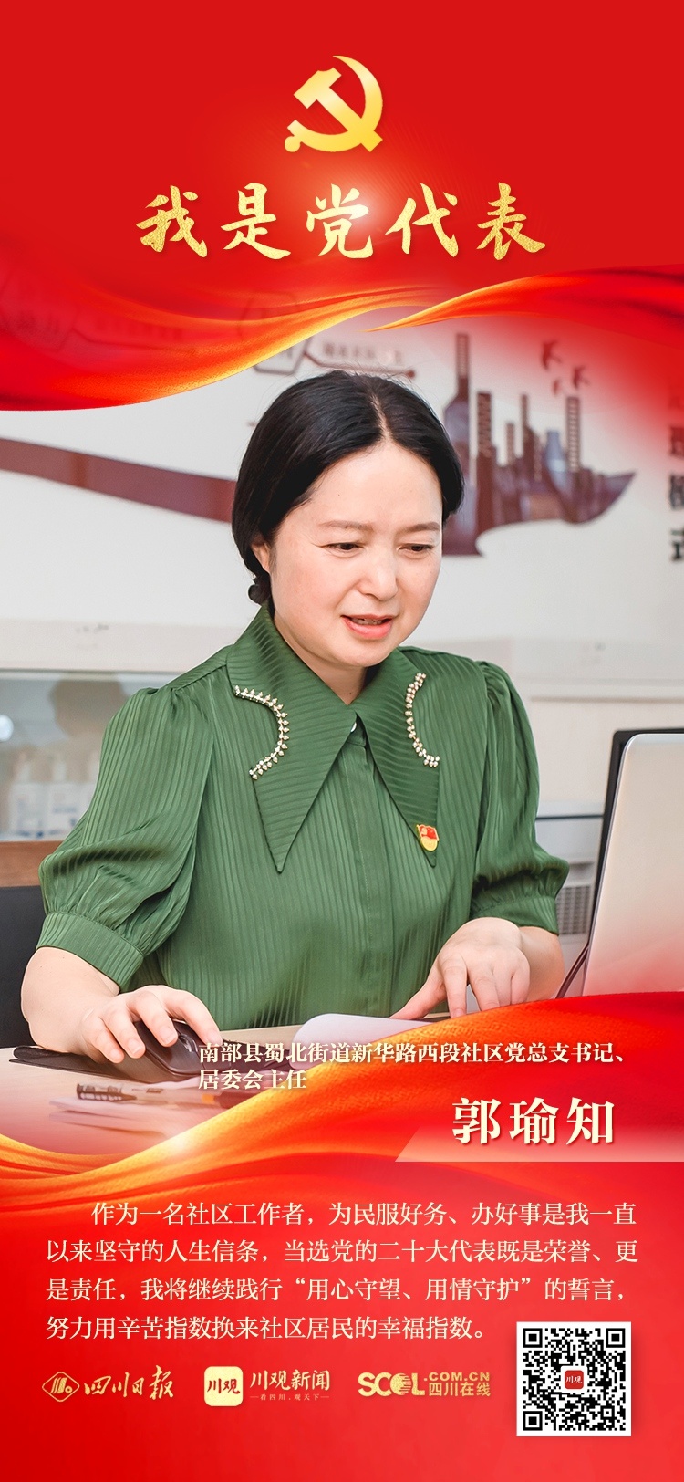 郭瑜知,南充市南部縣蜀北街道新華路西段社區(qū)黨總支書記、居委會主任,從事社區(qū)工作18年。2020年12月獲“全國抗擊新冠肺炎疫情優(yōu)秀城鄉(xiāng)社區(qū)工作者”稱號。所在社區(qū)黨總支曾獲評“全國基層低保規(guī)范化建設(shè)典型單位”“全省先進(jìn)基層黨組織”。