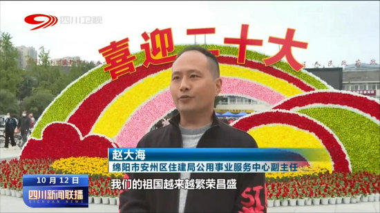 綿陽市安州區(qū)住建局公用事業(yè)服務(wù)中心副主任 趙大海:擺放各類鮮花十五萬余盆,讓我們共同祝愿黨的二十大勝利召開,我們的祖國越來越繁榮昌盛。