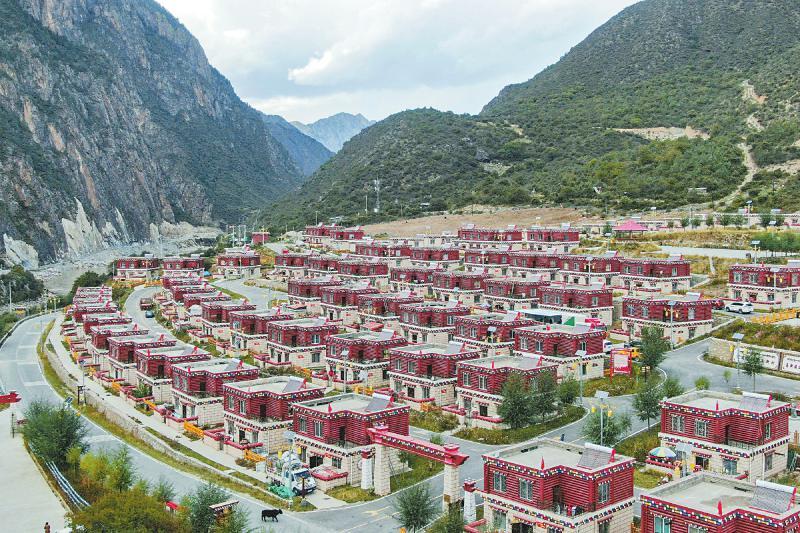 2020年10月17日,俯瞰甘孜州德格縣龔埡鄉(xiāng)雨托新村,金沙江在連綿的青山下奔流不息,高山河谷間,整齊的二層藏式小洋樓引人注目。