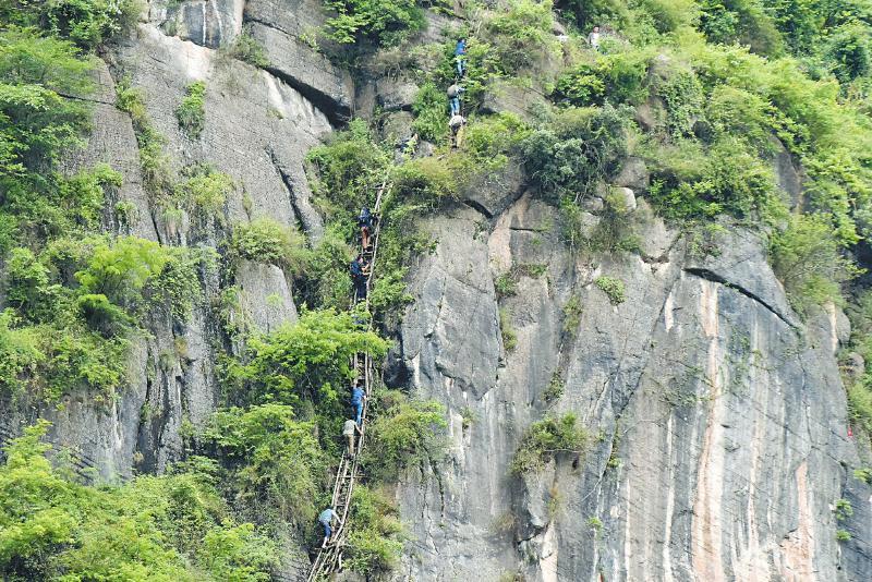 2016年5月,涼山州昭覺縣支爾莫鄉(xiāng)“懸崖村”——阿土列爾村的幾位村民使用懸崖上的藤梯攀爬回家。