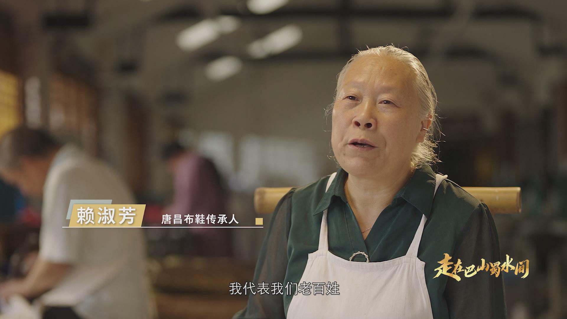 唐昌布鞋傳承人賴淑芳:“總書記來到我們的布鞋售鞋攤位,了解了工藝,他說在陜北的時候,老鄉(xiāng)就做這種布鞋,穿著舒適透氣。我當(dāng)時很激動,我就說,總書記,我代表我們老百姓,送一雙布鞋給你,他說,‘送一雙不好穿,買一雙可以’,當(dāng)時他就自費掏錢買了一雙布鞋。”