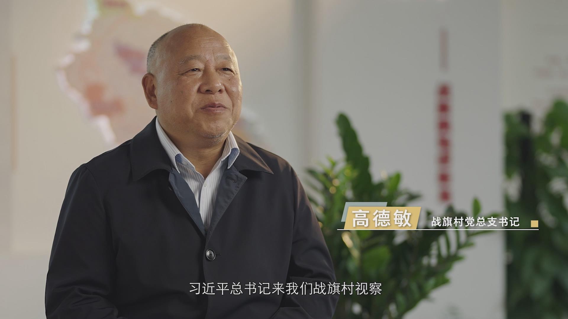 戰(zhàn)旗村黨總支書記高德敏:“2018年2月12號,習(xí)近平總書記來我們戰(zhàn)旗村視察,聽了我的匯報后,對我們在鄉(xiāng)村振興方面的做法非常肯定。特別是在講話的時候,他說,‘戰(zhàn)旗飄飄,名副其實’,然后要求我們把鄉(xiāng)村振興這件事干好,要繼續(xù)抓好發(fā)展,要走在前列、起好示范。”