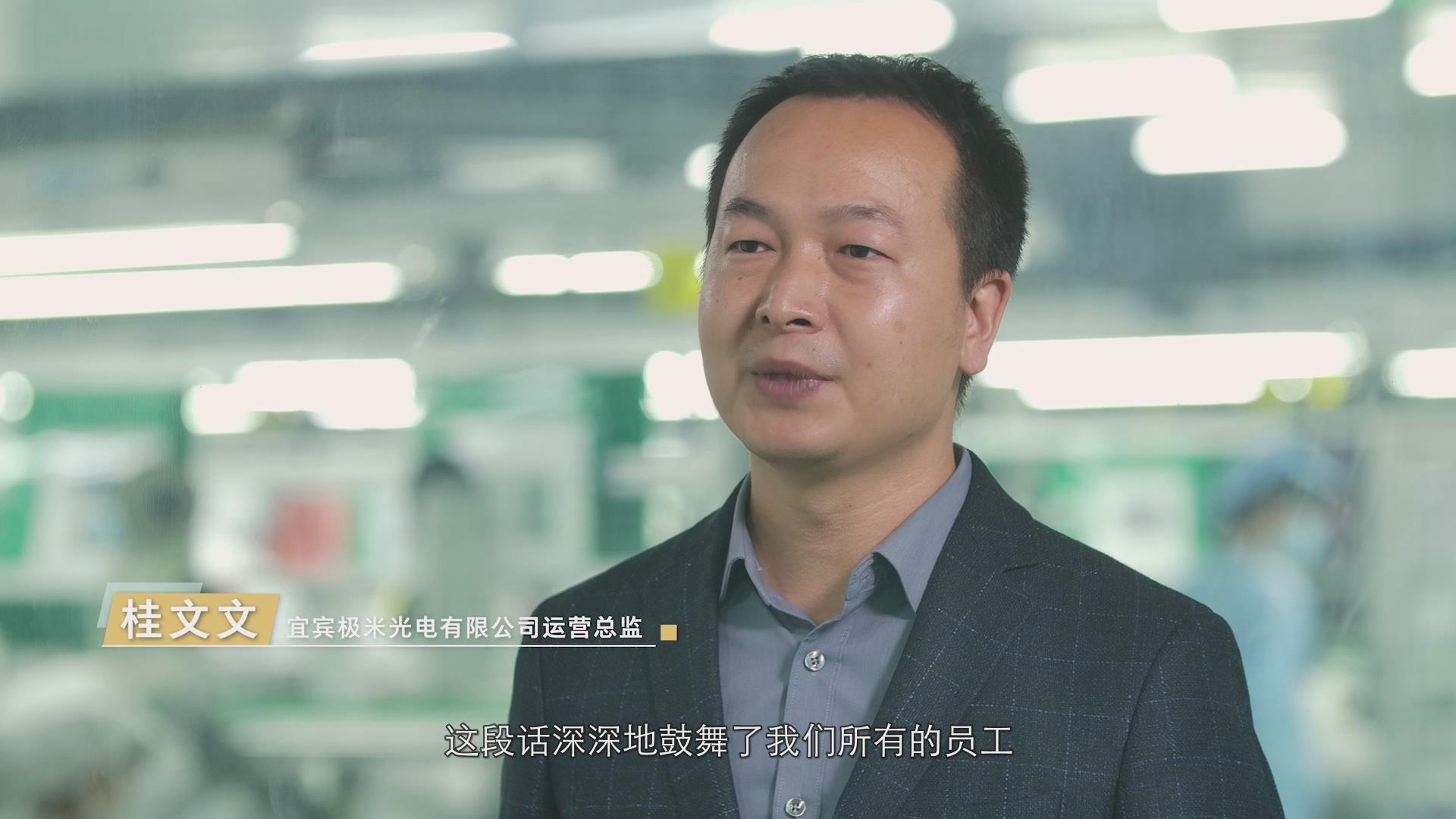 宜賓極米光電有限公司運營總監(jiān)桂文文:“這段話深深地鼓舞了我們所有的員工,大家都熱血沸騰,覺得我們現(xiàn)在做的是一個非常有成就感的事業(yè)。”