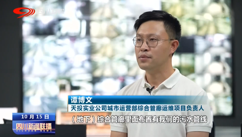 天投實(shí)業(yè)公司城市運(yùn)營(yíng)部綜合管廊運(yùn)維項(xiàng)目負(fù)責(zé)人 譚博文:(地下)綜合管廊里面布置有我們的污水管線,經(jīng)過(guò)處理后的水,也可以通過(guò)綜合管廊,排到河流,再次循環(huán)利用。
