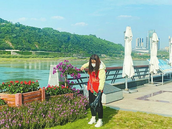 10月17日晨,秋陽(yáng)升起,三江口籠罩在一片金色中。9時(shí)許,穿上志愿者馬甲、帶好工具,三江志愿者管護(hù)隊(duì)隊(duì)員鐘蘊(yùn)馨等5人前往長(zhǎng)江公園開(kāi)始工作。江中,一江碧水波光粼粼,壯闊東流;岸上,5人拿著長(zhǎng)柄鉗和口袋進(jìn)行巡查,發(fā)現(xiàn)煙頭、紙巾、礦泉水瓶等垃圾,會(huì)立即清理。