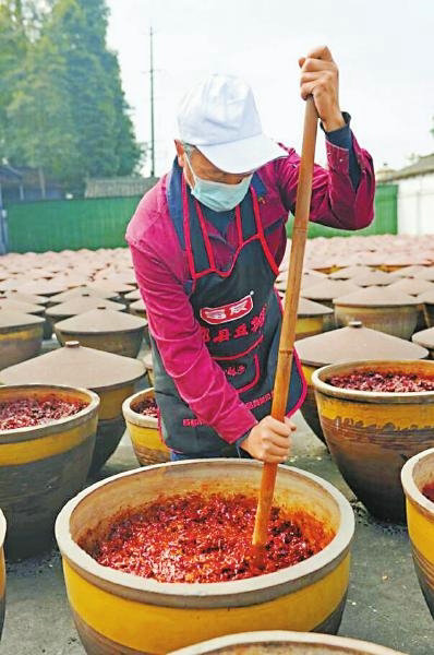 在成都市富友綠色調(diào)味品有限公司,也是同樣的繁忙。53歲的生產(chǎn)工人陳正福通過(guò)機(jī)械化操作,將翻曬好的郫縣豆瓣打包、裝箱。“攪拌、調(diào)配、翻曬、灌裝,全程機(jī)械化,這在幾年前是不敢想的。”該公司總經(jīng)理?xiàng)羁鼤窳艘还P賬:10年來(lái),公司員工沒(méi)有增加,年產(chǎn)值卻翻了10倍,達(dá)到6000多萬(wàn)元。“目前正準(zhǔn)備投入多元化產(chǎn)品線,打造郫縣豆瓣升級(jí)產(chǎn)品。”