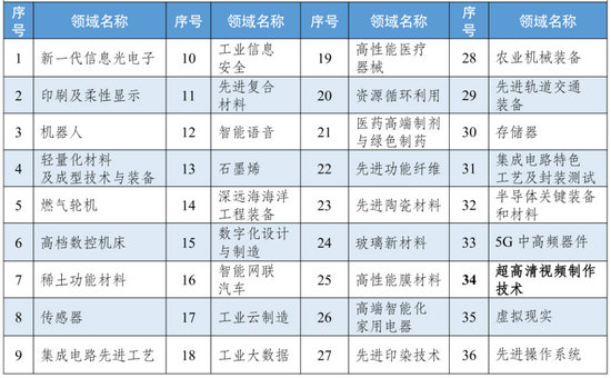 國家級制造業(yè)創(chuàng)新中心的36個重點(diǎn)建設(shè)領(lǐng)域。工業(yè)和信息化部官網(wǎng)截圖