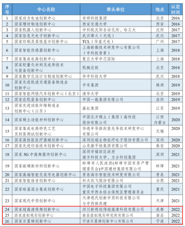 11月7日,記者從四川省經(jīng)濟(jì)和信息化廳獲悉,近日工業(yè)和信息化部批復(fù)組建國家石墨烯創(chuàng)新中心、國家虛擬現(xiàn)實(shí)創(chuàng)新中心、國家超高清視頻創(chuàng)新中心等3家國家制造業(yè)創(chuàng)新中心。其中,國家超高清視頻創(chuàng)新中心位于成都。