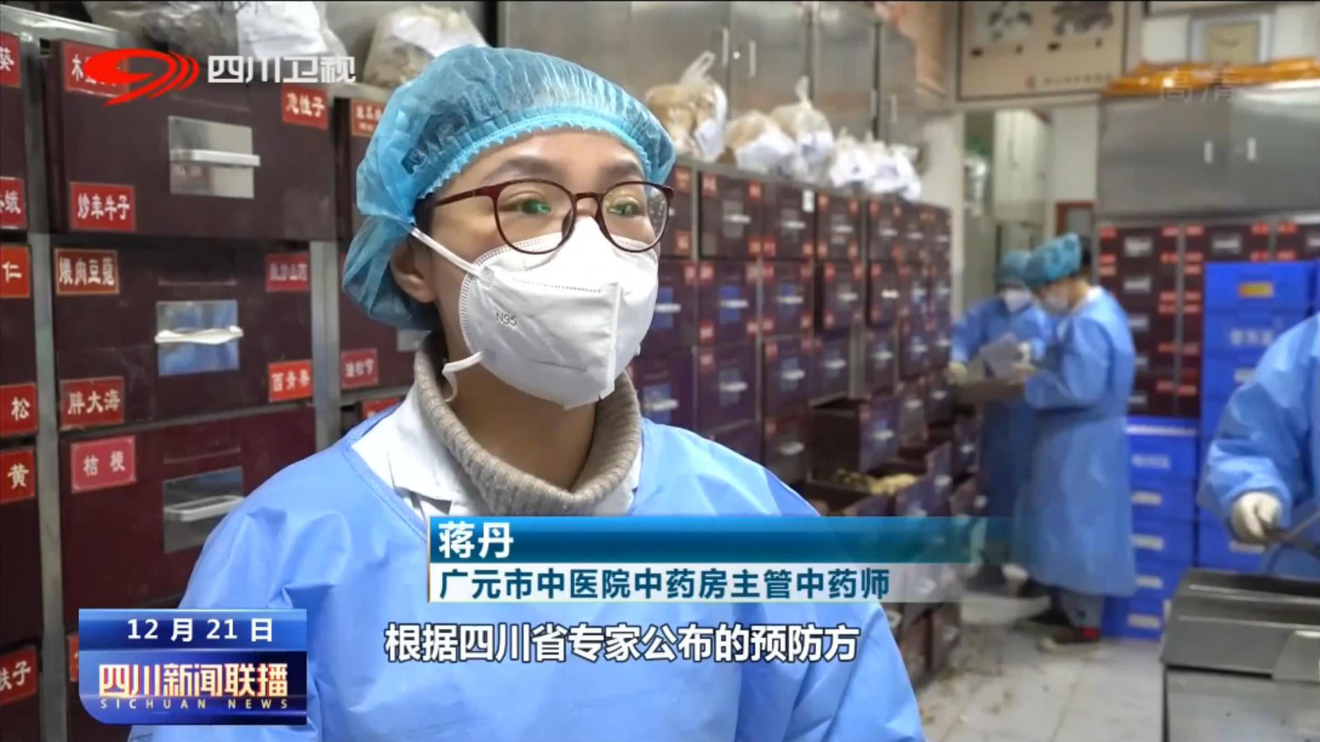 廣元市中醫(yī)院中藥房主管中藥師 蔣丹:根據(jù)四川省專家公布的預(yù)防方,就制備了這個新冠預(yù)防合劑。其原理就是正氣上存,邪不干正,希望提高大家的機(jī)體抵抗力 。