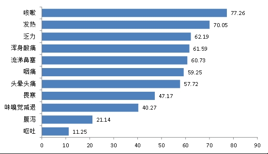 調(diào)查158506人中,臨床癥狀以咳嗽、發(fā)燒、乏力和渾身酸痛、流涕鼻塞為主。