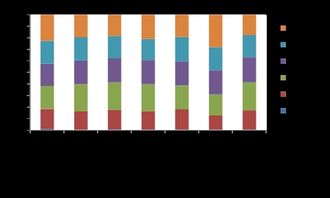 四川省居民基礎(chǔ)性疾病與咳嗽發(fā)生情況 從年齡分布來(lái)看,12歲以下兒童咳嗽多在5天以內(nèi),大部分在3~10天間,65歲以上老年人咳嗽超過(guò)10天的比例略高。