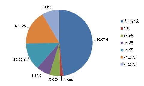 截至調(diào)查結(jié)束時(shí)間,48%的新冠病毒感染者尚未痊愈。38.62%的患者病程超過(guò)5天。