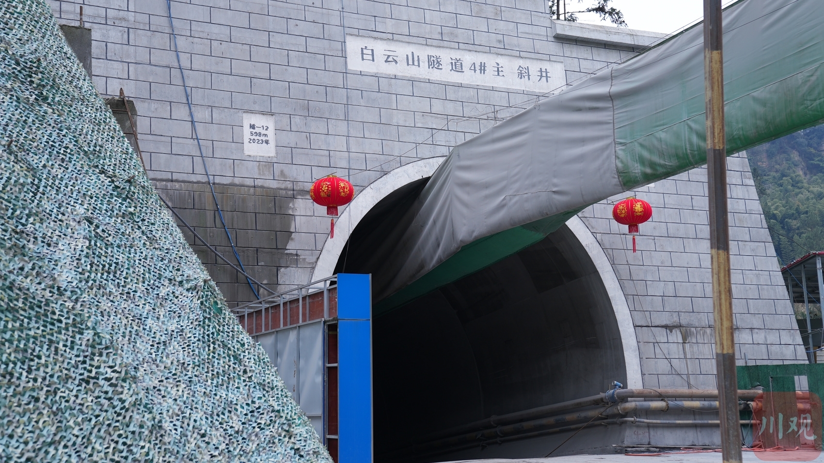 驅(qū)車前往白云山隧道4號(hào)斜井所在的內(nèi)江市資中縣新橋鎮(zhèn)太河村,途經(jīng)多個(gè)鄉(xiāng)鎮(zhèn)張燈結(jié)彩,節(jié)日喜慶余韻未散,一抵達(dá)4號(hào)斜井工地外,隱隱的施工聲就從洞口傳來。