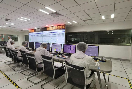 光明乳業(yè)華東中心工廠內(nèi),通過(guò)“智慧大腦中央控制室”,數(shù)字化操作人員僅通過(guò)中央控制室就能對(duì)牛奶“了如指掌”。(受訪者供圖)