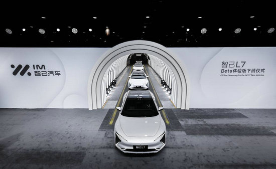 去年底,智己汽車首款車型L7首批200臺(tái)Beta體驗(yàn)版,在上汽集團(tuán)臨港智能工廠正式下線交付。(受訪者供圖)