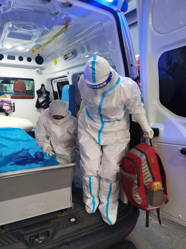 圖為德??h婦幼保健院醫(yī)護(hù)人員鄭安然(右)在抗疫一線參與病例轉(zhuǎn)運(yùn)工作。(受訪者供圖)