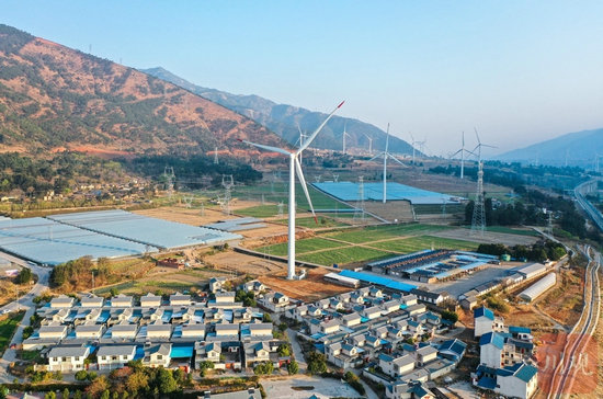 在大涼山的西南角會(huì)東縣,有超過(guò)200多臺(tái)“大風(fēng)車”,矗立在群山之間。站在會(huì)東縣的堵格風(fēng)電場(chǎng)的8號(hào)風(fēng)機(jī)下眺望遠(yuǎn)方,在西北方向近10公里處的山脊上,會(huì)東淌塘風(fēng)電場(chǎng)已經(jīng)于去年11月全面投產(chǎn)發(fā)電,39臺(tái)風(fēng)機(jī)孜孜不倦地將風(fēng)能轉(zhuǎn)化為電能;位于東南方向不到20公里左右,會(huì)東小街一期16萬(wàn)千瓦風(fēng)電場(chǎng)正在熱火朝天地施工建設(shè),有望于2023年12月建成投產(chǎn)。