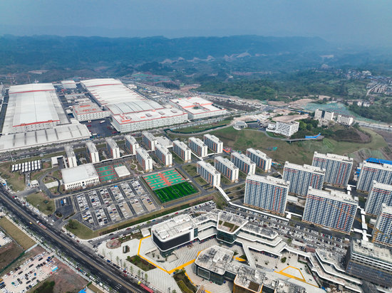 宜賓三江新區(qū),站在山坡上的觀景平臺,能俯瞰占地近20平方公里的四川時代。
