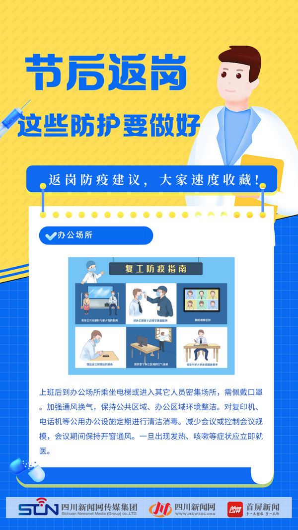 摘要:“五一”小長假已經(jīng)結(jié)束,返崗復(fù)工途中哪些細(xì)節(jié)要注意,怎樣在辦公地、學(xué)校、醫(yī)院等公共場所采取有效措施保護好自己?這份一份返崗防疫建議,大家速度收藏!