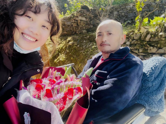 常見(jiàn)到95后教師蔣訓(xùn)雅推著
