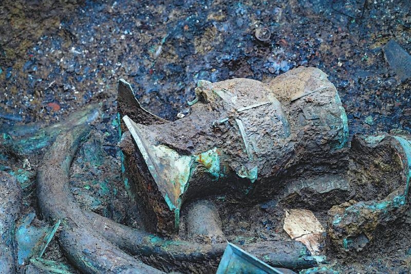 如今,6座新坑中7、8號坑仍在繼續(xù)發(fā)掘,有人趴在操作臺上剔著文物上的泥土,有人在電腦前記錄著現(xiàn)場信息。坑內(nèi),層層疊疊的象牙已經(jīng)取完,暴露出來的青銅器密密麻麻,視覺效果極為震撼。在下一次成果發(fā)布中,預計還將繼續(xù)有重量級的文物出現(xiàn)。