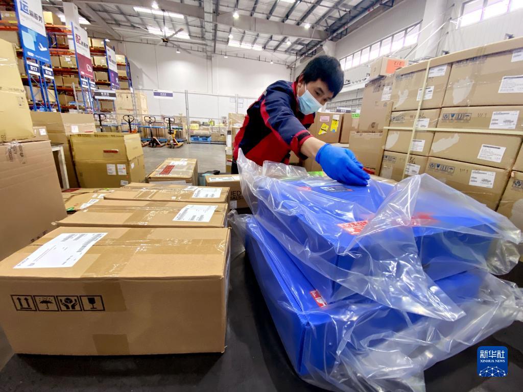 5月20日,在上海泓明供應(yīng)鏈分撥中心,工人在工作。