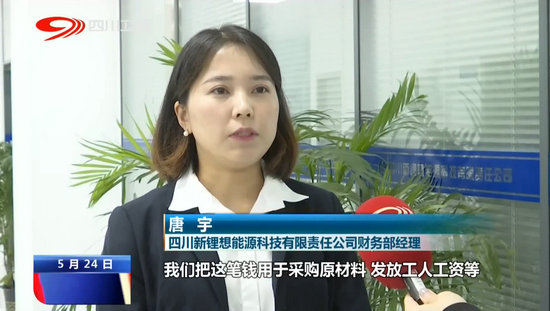 四川新鋰想能源科技有限責任公司財務(wù)部經(jīng)理 唐宇:今年4月,我們獲得了增值稅留抵退稅1400余萬元,我們把這筆錢用于采購原材料,發(fā)放工人工資等,目前我們從事生產(chǎn)的工人就有200多人,其中有20多名是脫貧戶和失業(yè)再就業(yè)人員,沒有因疫情沖擊,裁掉一名員工。