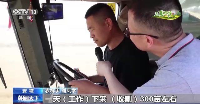 農(nóng)機(jī)手 劉鳳學(xué):一小時(收割)30畝左右,一天(工作)下來(收割)300畝左右。盡量一畝田減少損失50斤左右,做到顆粒歸倉。